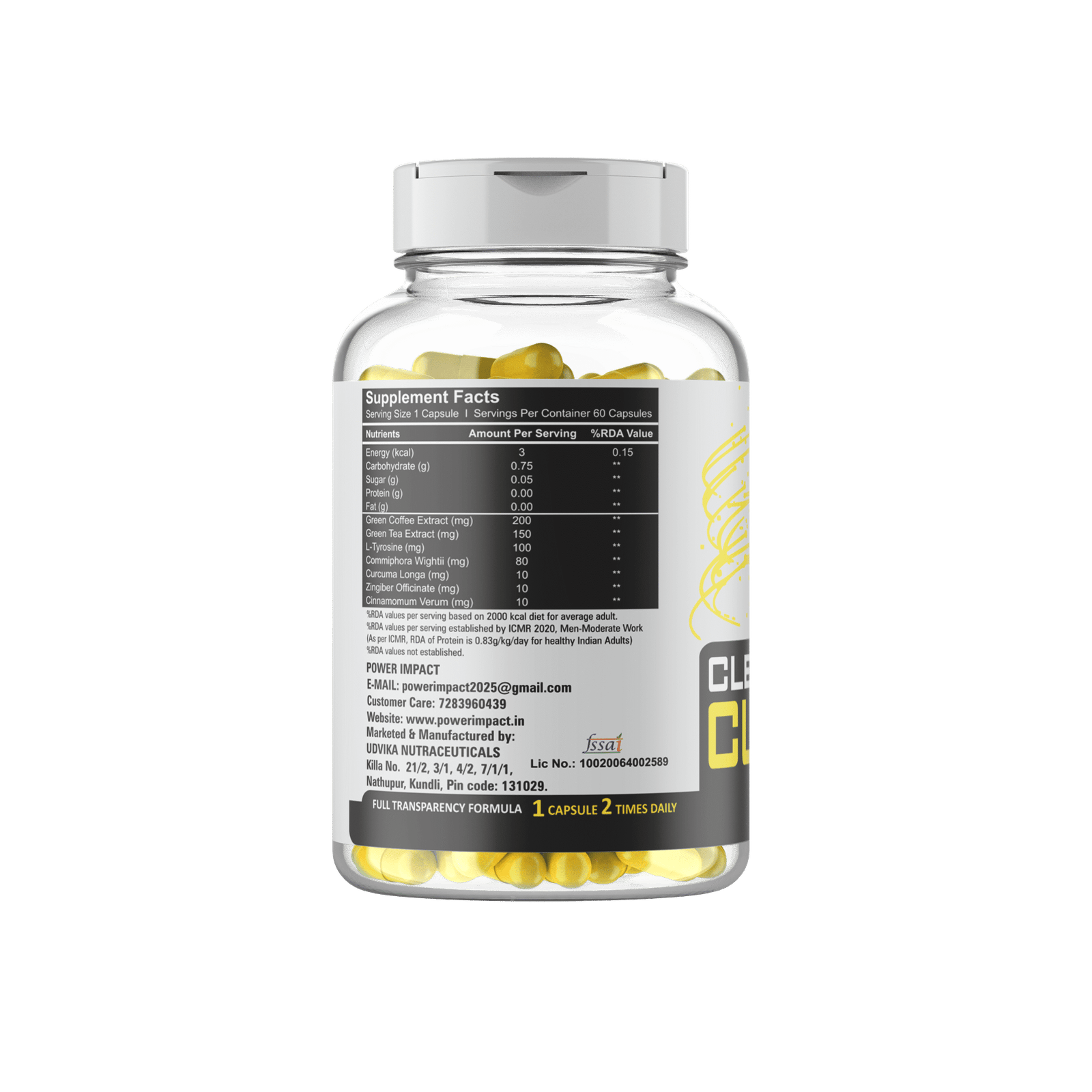 Power Impact CLEAN CUT is an advanced fat-loss support supplement designed to help you burn fat faster, stay energized, and achieve a leaner, more defined physique. Combining thermogenic actives and metabolism-boosting ingredients, CLEAN CUT supports fat loss through enhanced ketosis, improved metabolic rate, and sustained energy.